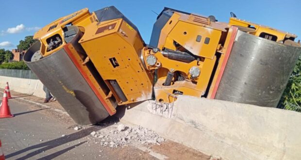 O maquinário ficou suspenso sobre a estrutura de concreto e houve vazamento de óleo diesel no local, que teve parte de uma das faixas interditadas. Em razão do acidente, o trânsito ficou bastante complicado no trecho, e há congestionamento.