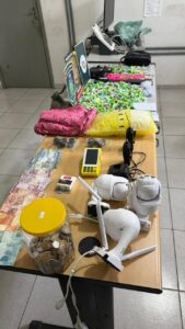 Nos endereços vistoriados, as autoridades apreenderam uma expressiva quantidade de drogas e materiais relacionados ao crime: