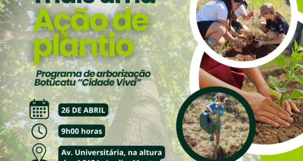 A Prefeitura de Botucatu, por meio da Secretaria do Meio Ambiente, realizará neste sábado (26) uma nova ação de plantio de mudas. A ação é aberta a toda a população como parte da gestão participativa do Programa de Arborização Urbana “Botucatu Cidade Viva”.