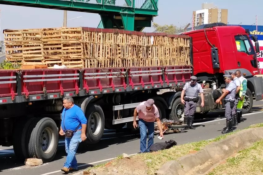 Um motociclista de 34 anos morreu, no final da manhã desta quinta-feira (10), por volta de 11h50, em um acidente envolvendo um caminhão, no quilômetro 338 da rodovia Marechal Rondon, sentido Interior-Capital, próximo à base do Policiamento Rodoviário, em Bauru.