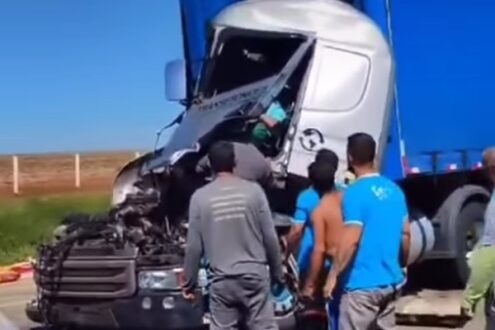 Conforme o Corpo de Bombeiros, o motorista da carreta bateu na traseira do outro veículo e ficou preso nas ferragens da cabine. Ele foi socorrido ainda consciente e encaminhado ao hospital do município pelo Serviço de Atendimento Móvel de Urgência (Samu).
