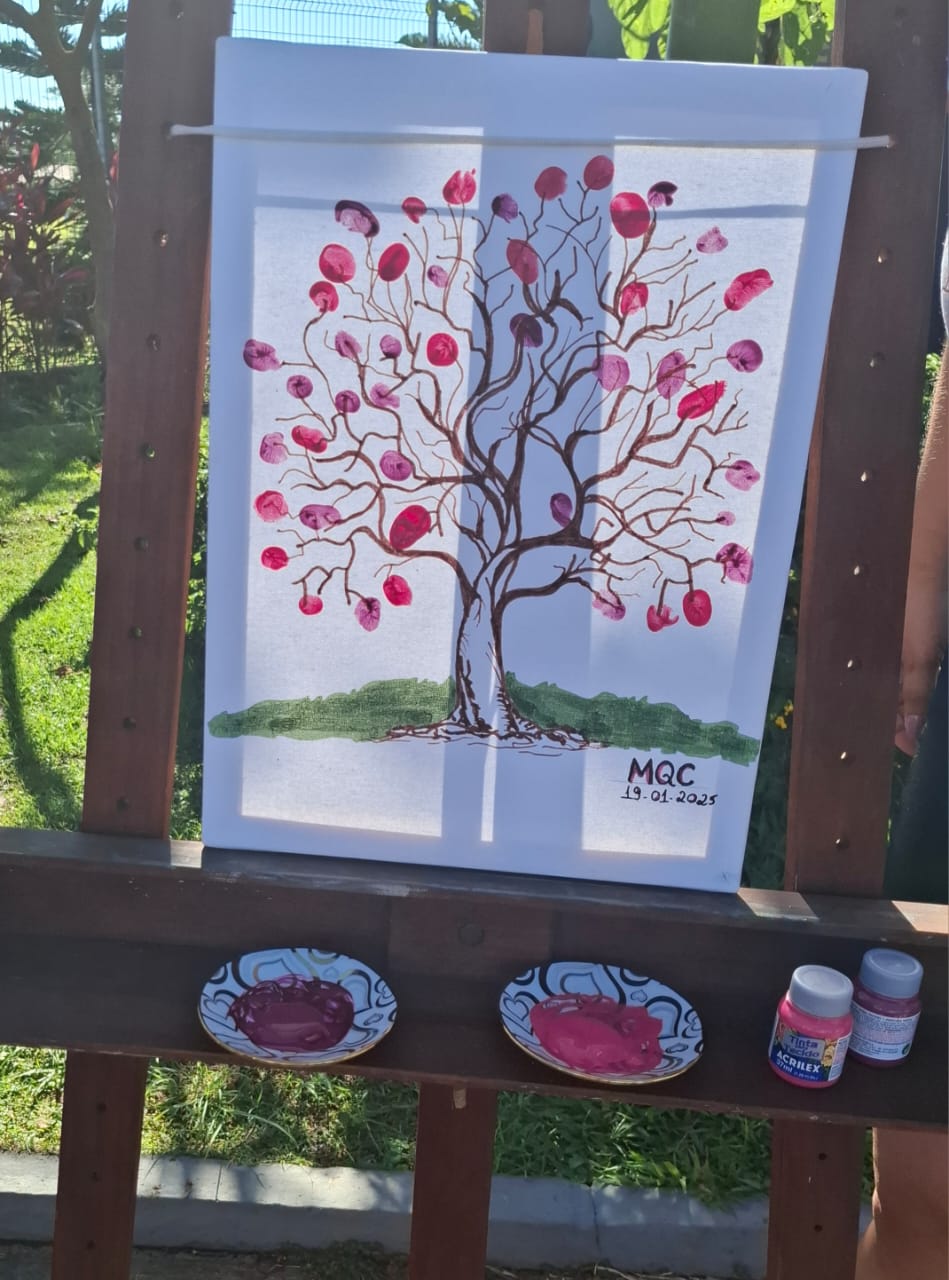 Após a corrida, as mulheres pintaram com a ponta dos dedos, uma tela branca com a ilustração da árvore da vida. Provocando a reflexão sobre a importância de iniciar o ano novo como uma tela em branco para novas experiências e acontecimentos.