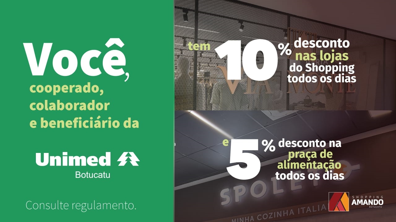 O Shopping Amando tem descontos especiais para Cooperados, Beneficiários e Colaboradores Unimed Botucatu