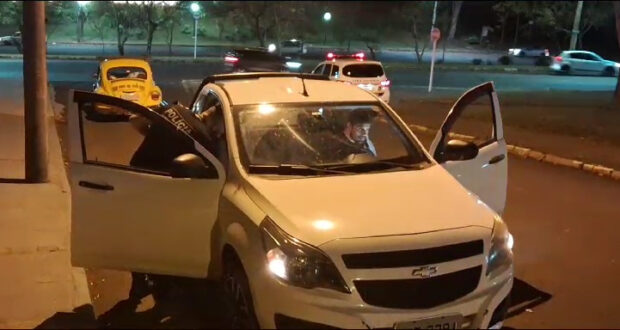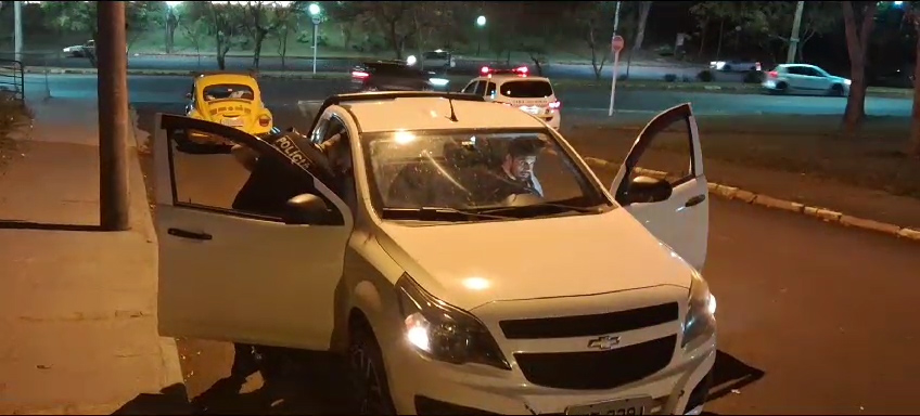 Houve uma perseguição pelas ruas da cidade, onde na Praça Brasil Japão, os indivíduos acabaram batendo a Montana em um Fusca que estava nas imediações da praça e finalmente a apreensão do veículo.