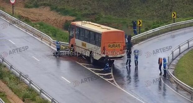 Com o impacto, o ônibus permaneceu imobilizado na pista até a chegada das equipes de emergência. No momento do acidente, chovia na região, fator que pode ter influenciado na perda de aderência e contribuído para a ocorrência.