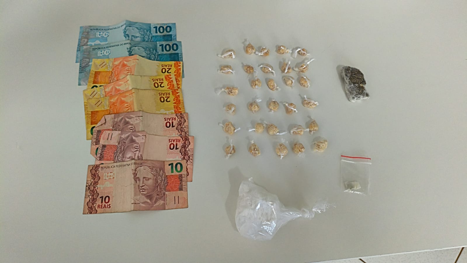 Além das drogas, foram apreendidos R$ 290,00 em espécie.