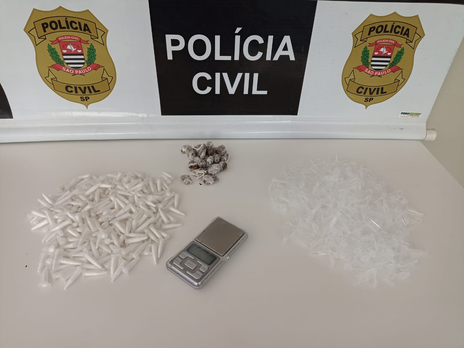 Operação Policial realizada pela Delegacia de Investigação Sobre Entorpecentes de Botucatu – DISE, com a finalidade de dar cumprimento a Mandado de Busca e Apreensão Domiciliar, durante buscas em local suspeito de guarda de droga, apreenderam 286 pinos com cocaína, 20 parangas de maconha, uma balança de precisão e 500 pinos vazios, para acondicionamento da droga.