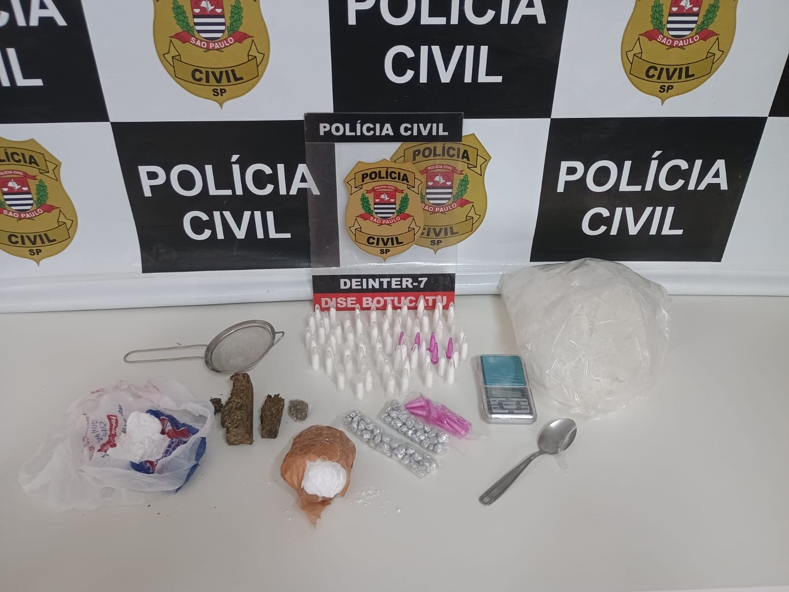 Policiais Civis da DISE de Botucatu, durante operação desencadeada na manhã desta quarta-feira (18), visando coibir o trafico de drogas, deram cumprimento a 3 mandados de busca e apreensão domiciliar, onde apreenderam dezenas de porções de cocaína e crack, já embaladas pra a venda direta ao usuário, além de porções grandes a granel de cocaína e maconha, bem como 500 pinos vazios, que seriam utilizados pra acondicionamento da droga e balança.