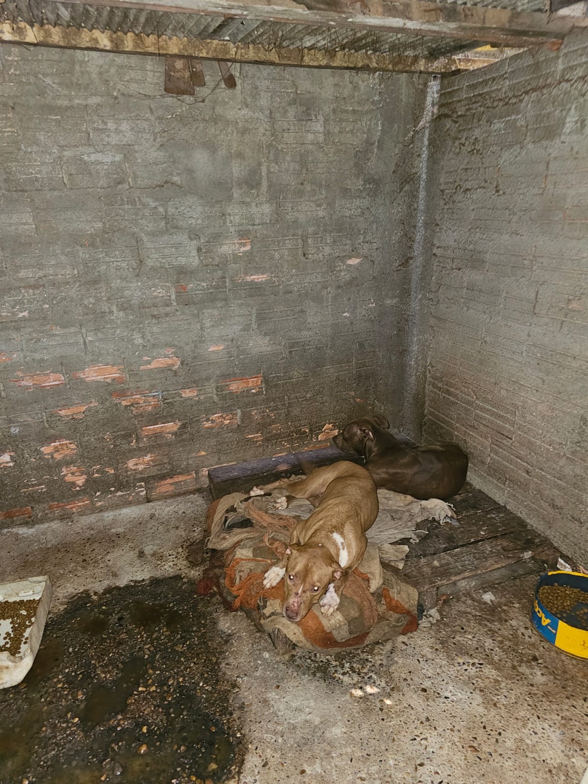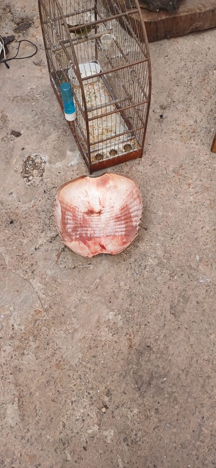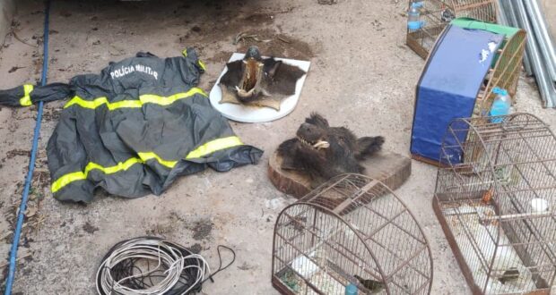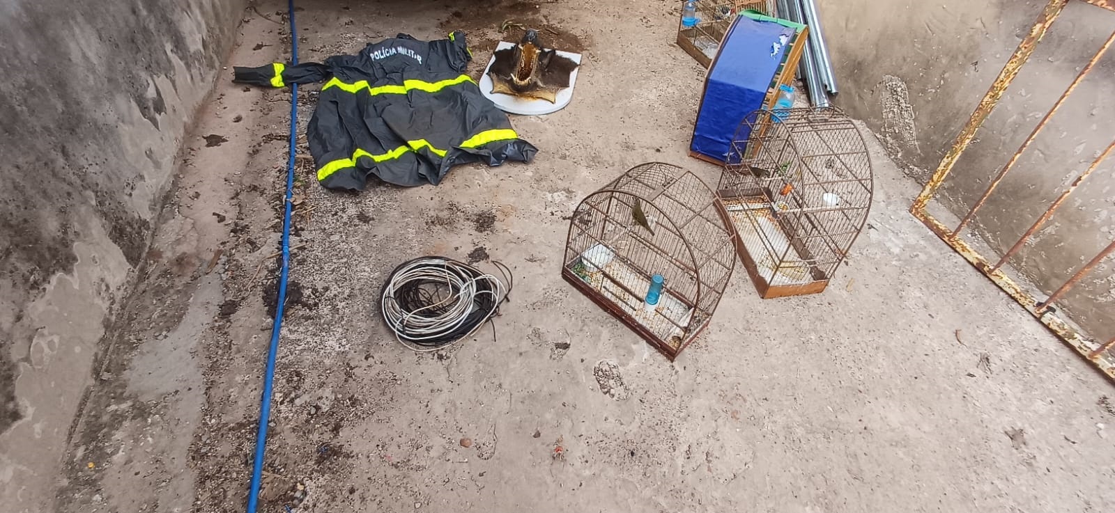 Encontrado também na residência, várias aves silvestres, as quais estavam em gaiolas, haviam cinco cachorros que estavam com machucados recentes e antigos e todos estavam desidratados.