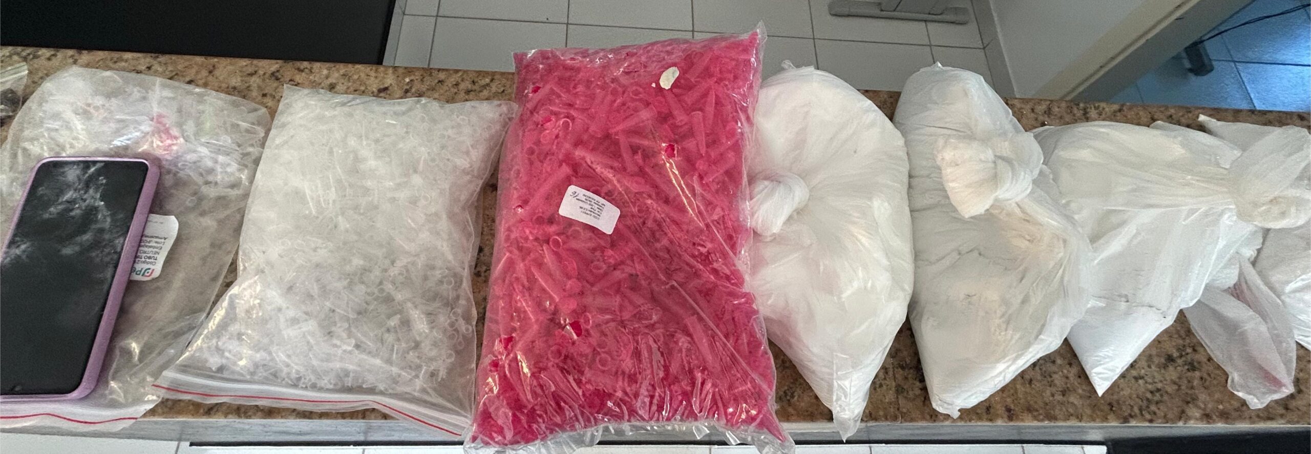 Com base nas informações coletadas, a Justiça expediu mandados de busca para quatro imóveis em Piramboia. Durante as diligências, as equipes apreenderam grande quantidade de crack e maconha, tanto em porções prontas para venda quanto em volumes maiores para armazenamento. Além disso, foram encontrados diversos eppendorfs vazios, indicando a produção em larga escala de entorpecentes, e materiais utilizados para embalar as drogas.