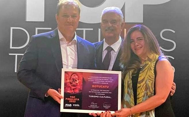 Botucatu é Top destino turístico em Turismo Cultural do Estado de São Paulo. A premiação foi realizada na tarde desta quarta-feira (7), em São Paulo. Agora você vai conhecer alguns dos motivos que fazem da cidade um destino imperdível em qualquer época do ano. Ao acompanhar o trabalho que a cidade desenvolve em sinergia entre Cultura, Turismo e Lazer; e Poder Público, iniciativa privada e instituições, é possível entender porque Botucatu é tão badalada e procurada e multipremiada. São inúmeras atividades turísticas culturais que acontecem durante todo o ano. Muitas vezes há mais de uma atividade no mesmo dia. E o melhor, a grande parte é aberta ao público, através da secretaria Adjunta de Turismo, que coordenada, organiza e dá ritmo aos eventos. Um dos motivos é a própria cidade que se desenvolveu no topo da Cuesta, o que proporciona lindos cenários, paisagens deslumbrantes, mirantes e cachoeiras. A área urbana mistura modernidade e preserva o que há de melhor do período republicano, com prédios históricos de grandes arquitetos restaurados e entregues para o uso da população. Outro fator que culmina na forte cena turística e cultural, e que oferece acesso a todos às atividades é que a cidade é um celeiro artístico. Berço da música caipira, Botucatu tem DNA musical e criativo e, atualmente, o turismo é o grande potencializador e propagador dos artistas, através das atividades desenvolvidas na Cidade, com editais, como o programa Musitur, que leva música aos pontos turísticos da cidade. Há ainda o Festival das Aves, o Programa de Incentivo à Produção Artística (Pipa). (leia mais abaixo). Além de Top Destinos, Botucatu venceu o Prêmio de Capital Cultural do Governo do Estado em 2021 e 2022. Entenda os atributos, programas e atividades que colocam a cidade como Top destino em turismo cultural. Organização e infraestrutura A cidade respira cultura, arte e há organização, harmonia e sinergia entre Poder Público, instituições e iniciativa privada, o que oferece programação variadas com música, artes, teatro e festivais aos visitantes. Botucatu também possui boa rede hoteleira, restaurantes, lanchonetes e demais serviços encontrados em cidades de médio-porte. Uma cidade preparada para receber todo tipo de turista. Equipamentos públicos, institucionais e privados. Com uma arquitetura do período republicano, Botucatu tem a única pinacoteca do interior do estado. Instalada em um prédio projetado na década de 1920, pelo escritório do arquiteto Ramos de Azevedo – o mesmo que construiu a Pinacoteca do Estado de São Paulo. O local já recebeu exposições como Rodin: Figura e Modernidade em parceria com a Pinacoteca de São Paulo; exposição Luso Afro Brasil – encontros: arte, história e memória; Exposição Vale do Rio Omo : o povo e a natureza; exposição Migrações à mesa, em parceria com o Museu da Imigração. A Pinacoteca também abriga diversos eventos das secretarias de Cultura, Educação e incentiva e apoia a formação de artes, com salas para leitura. Também abriga oficinas e as sessões de Cinema Pontos MIS, em parcerias com o Museu da Imagem e do Som A praça Isabel Arruda, no Centro, recebe diversos eventos durante o ano, inclusive as feiras turísticas, com artesanato, gastronomia, arte e cultura.