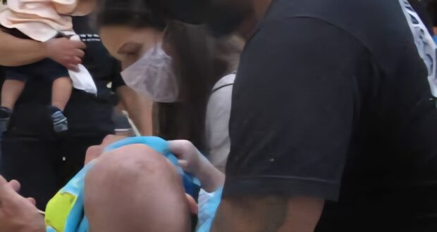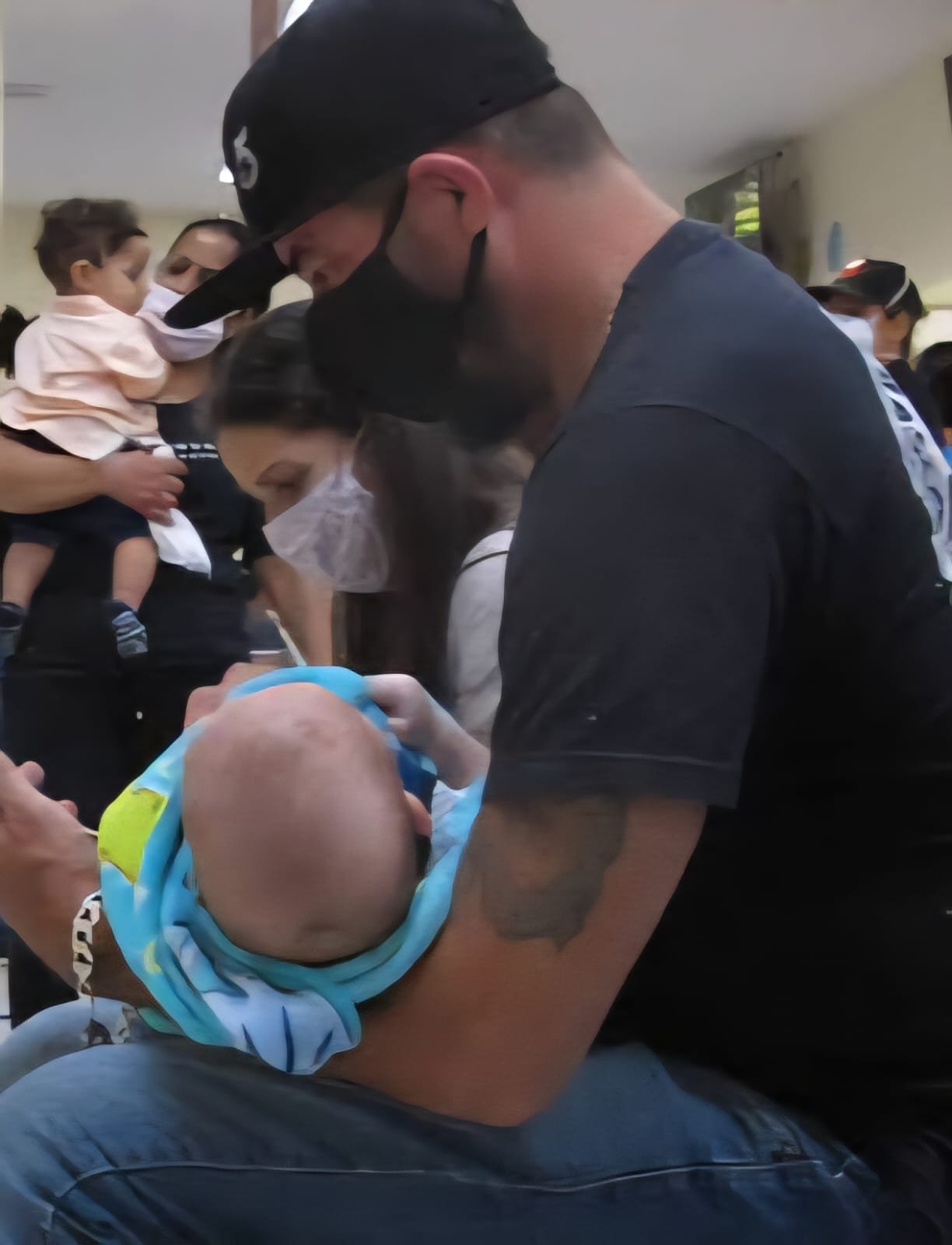 “É um absurdo isso, estou com meu filho com falta de ar e com febre esperando pra tomar medicação há quase 2 horas” diz um pai chorando e indignado com a situação.