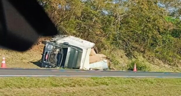 Segundo a Polícia Militar Rodoviária, por motivos a serem esclarecidos, houve um choque contra a defenda metálica seguido de tombamento, quando o caminhoneiro seguia sentido Bauru, por volta de 8h30. O condutor saiu ileso. O acidente não prejudicou o tráfego de veículos na pista, embora o trânsito tenha ficado mais lento por alguns momentos, e o local foi sinalizado por cones.