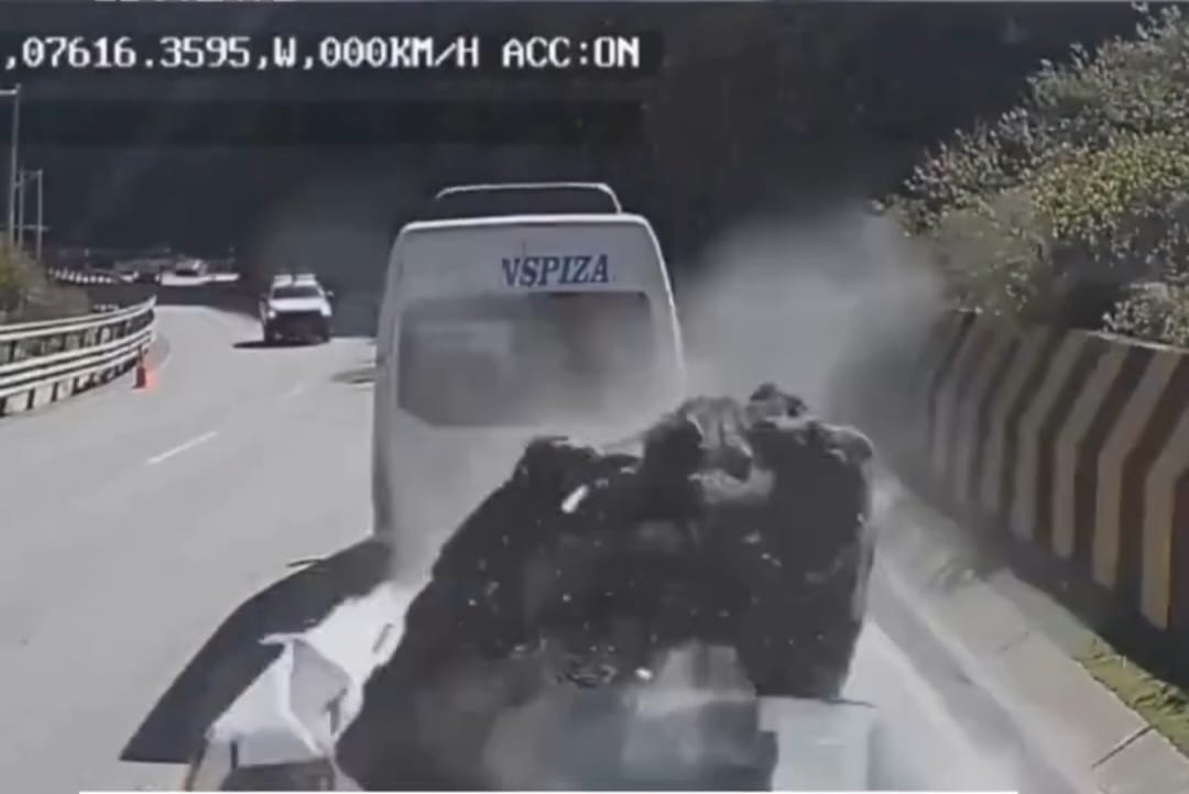 O acidente foi registrado por uma câmera veicular, e as imagens mostram o momento em que a pedra atinge a caminhonete. As autoridades investigam as circunstâncias do incidente.
