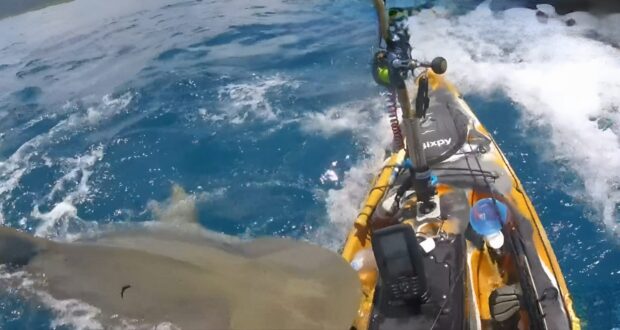 Ele havia acabado de pegar um peixe grande ainda em águas rasas e esqueceu de desligar sua câmera GoPro. “Foi quando ouvi um zunido, como se fosse um barco vindo em minha direção, mas sem o motor”, relatou à reportagem da KITV.