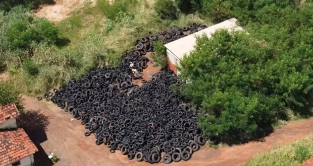 “No entanto, a empresa responsável pela coleta na região suspendeu as retiradas agendadas, alegando que cimenteiras que utilizam os pneus triturados como combustível estavam com os fornos desligados. Com isso, pneus começaram a se acumular no ecoponto, já que oficinas e borracharias continuam descartando pneus no local, por hábito consolidado ao longo dos anos”.