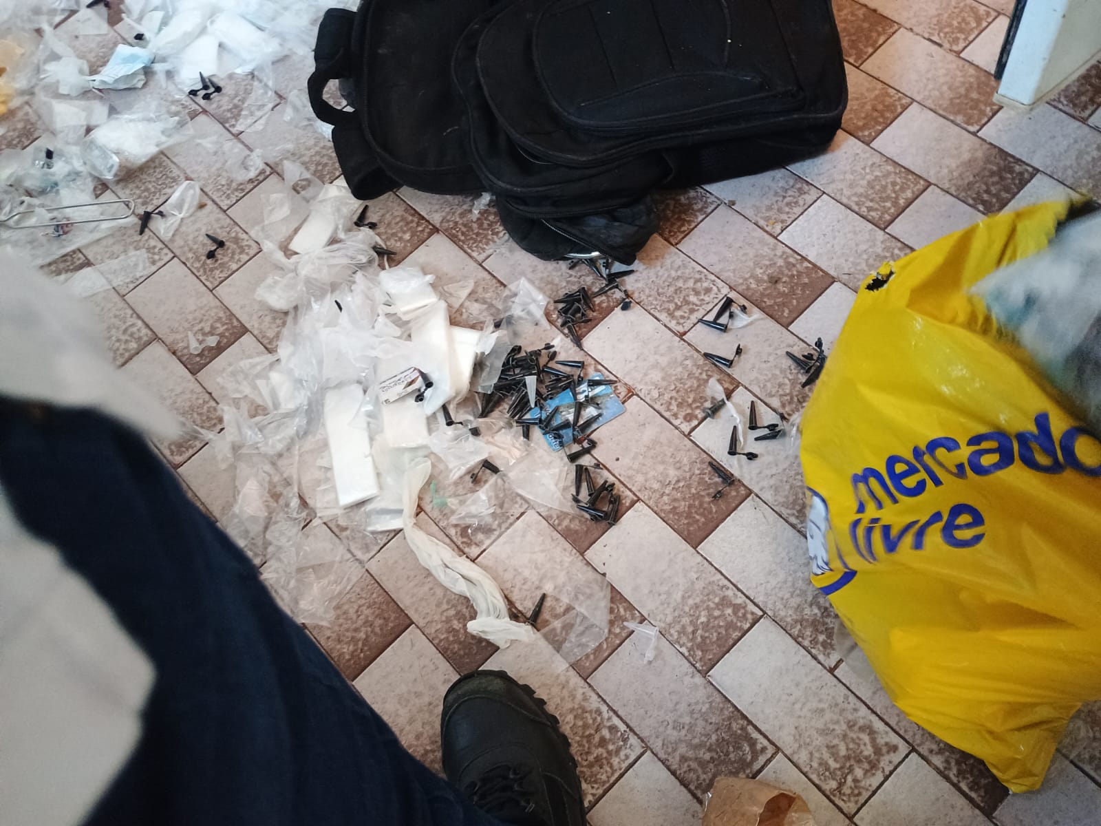 No local foram apreendidos aproximadamente 1 kg de crack e 1 kg de cocaína , entre porções brutas e já individualizadas. Além de 3 balanças de precisão, 4.500 pinos (ependorfs) onde acondicionam cocaína, milhares de saquinhos plásticos, tipo sacolé, tbm para individualizar as porções de drogas e outros petrechos.