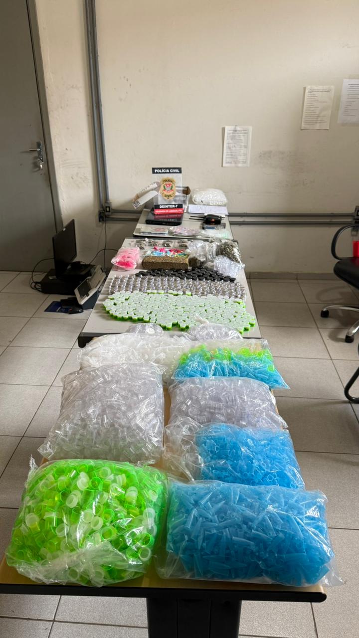 Durante as buscas, foram apreendidas expressivas quantidades de cocaína, maconha, crack, dry e ice, além de materiais utilizados na preparação e embalagem dos entorpecentes.