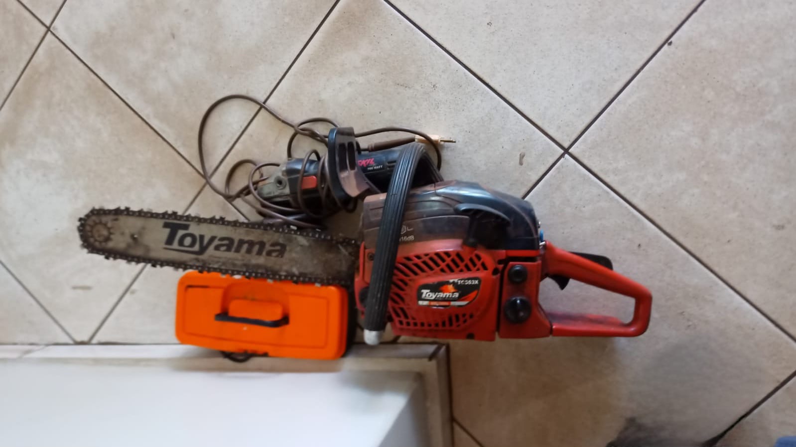 Foram furtados de uma obra uma motosserra, lixadeira, furadeira e uma caixa com mini retífica, foram recuperados alguns produtos que foram reconhecidos por uma das vítimas.