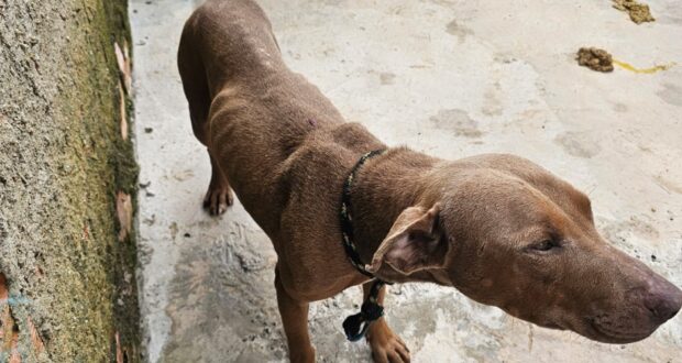 Na manhã desta terça-feira (20), o Departamento de Proteção Animal da Vigilância Ambiental em Saúde e Polícia Civil flagraram um cão da raça pitbull em situação de maus tratos no Distrito de Rubião Junior.