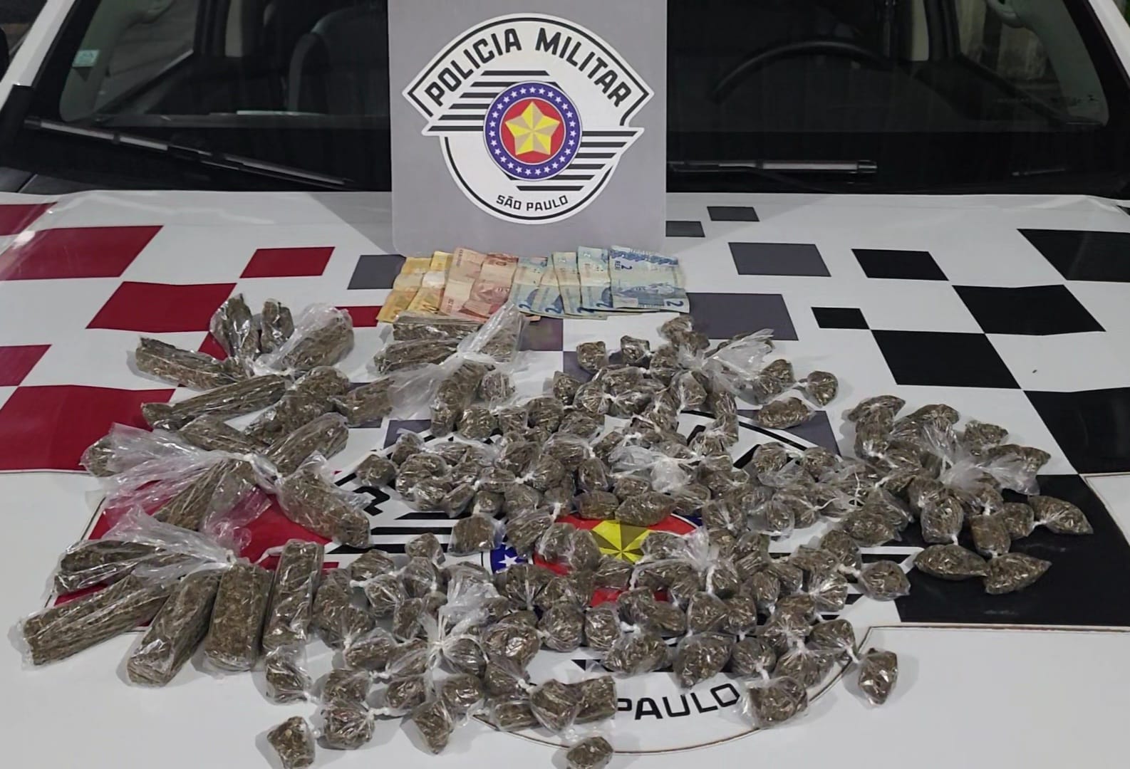 Total de apreensões: 190 porções de maconha e R$70,00 em espécie.