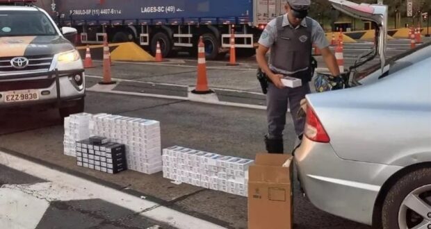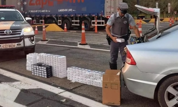 Durante a fiscalização, foram encontrados os aparelhos celulares no banco traseiro e no porta-malas do carro. Eles não apresentavam notas fiscais ou documentos de compra.