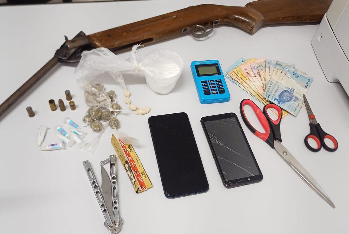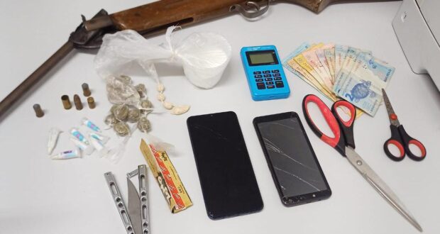 Pratânia (SP) – Operação Policial realizada nesta quinta-feira (05), pela Delegacia de Polícia de Pratânia, com a finalidade de dar cumprimento a Mandado de Busca e Apreensão Domiciliar na residência do suspeito investigado, referente a tráfico de drogas e posse irregular de arma de fogo, onde nas diligências os policiais civis localizaram uma carabina, vários cartuchos deflagrados, e várias drogas já embaladas para a venda (Crack, Cocaína e Maconha), também fora apreendido celulares e dinheiro; sendo dada voz de prisão em flagrante ao investigado.