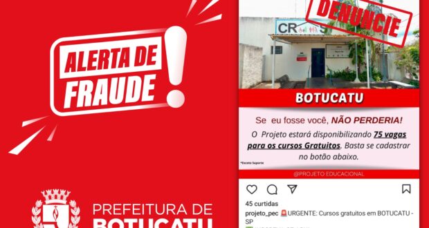 Todos os formulários de inscrições para cursos ou serviços oferecidos pela Prefeitura são disponibilizados no site, não utilizando sites particulares ou de terceiros. A Prefeitura também esclarece que não faz contato por telefone ou aplicativos de mensagens oferecendo formações profissionais como esta.