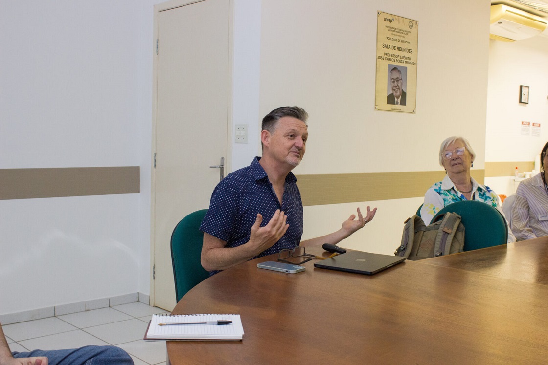 Entre os dias 15 e 18 de setembro, o Hospital das Clínicas da Faculdade de Medicina de Botucatu (HCFMB) recebeu a visita do Prof. Jeffrey Pufahl, especialista em Artes na Saúde ligado à Rutgers University (EUA). A visita teve como foco a construção de parcerias entre áreas da saúde e da arte, com o intuito de desenvolver projetos que promovam o bem-estar e a humanização no ambiente hospitalar.