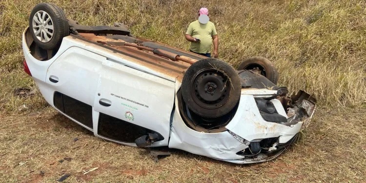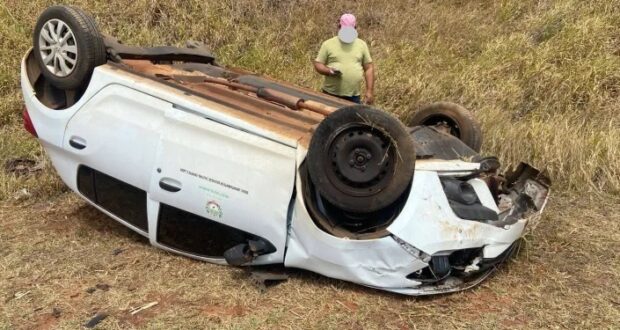 Uma professora sofreu ferimentos leves após capotar um veículo oficial da Prefeitura de Manduri nesta sexta-feira (5), na rodovia que liga Cerqueira César a Manduri.