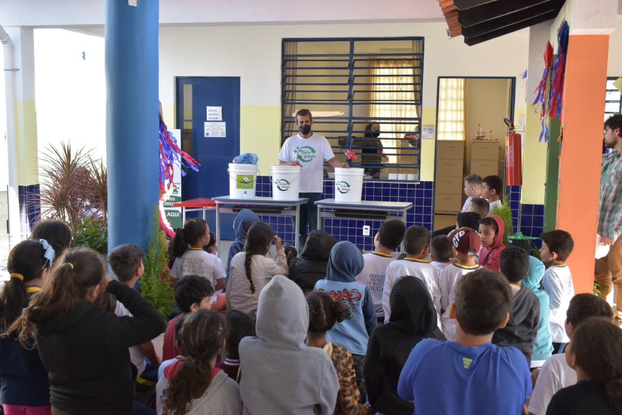 Os alunos dos 3º e 4º anos da EMEFI Mozart de Morais, no Residencial Cachoeirinha, receberam nesta semana uma visita interativa da empresa Ciclo Limpo para apresentação e instalação de um minhocário (um tipo de composteira com minhocas).