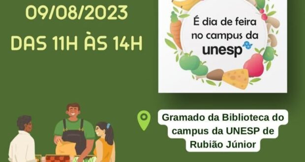 Na próxima quarta-feira, 09, “É Dia de Feira do Campus da Unesp”. O evento, sempre das 11 às 14 horas, no Gramado da Biblioteca do campus da Unesp, em Rubião Júnior, é uma estratégia de promoção e incentivo à segurança e soberania alimentar de funcionários, pacientes e de quem visita o campus.