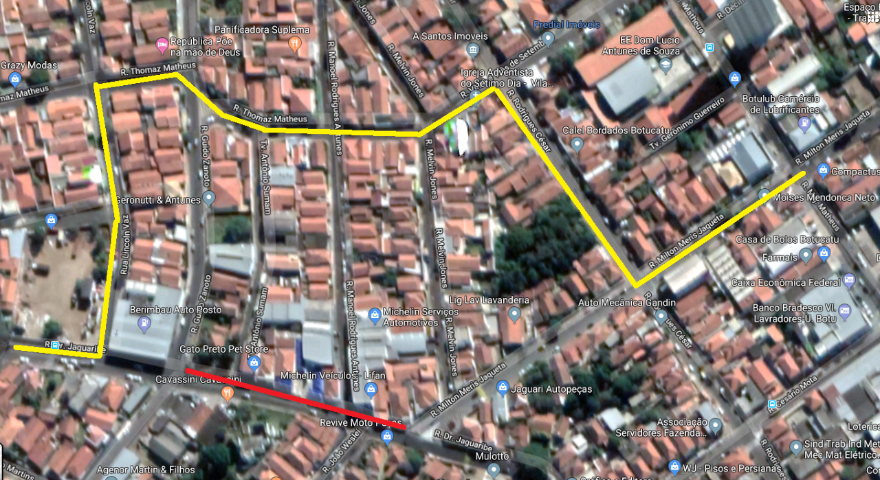 Devido ao fechamento da via a linha 109 – Cambuí – Itamaraty / Centro, do Transporte Coletivo, sofrerá mudanças conforme exemplificado no mapa.