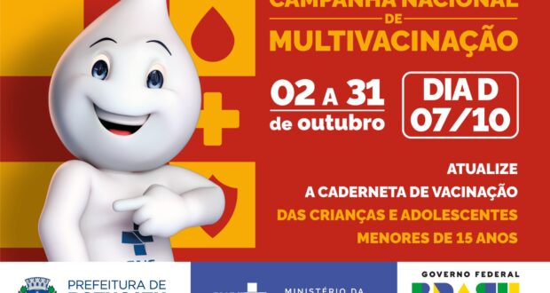 Neste sábado. 07 de outubro, a Secretaria de Saúde promoverá o Dia D da vacinação, quando todas as unidades de saúde estarão abertas para a imunização das 8 às 17 horas. A ação faz parte da Campanha Nacional de Multivacinação para atualizar o calendário de vacinas de crianças e adolescentes até os 15 anos de idade, além de adultos.