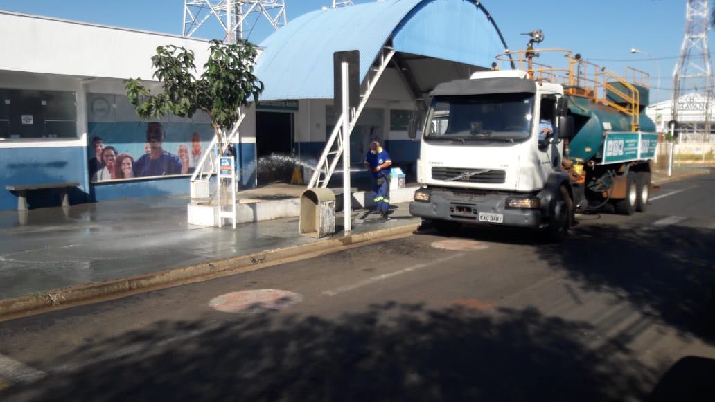 O trabalho de sanitização de pontos da Cidade, característicos pela aglomeração de pessoas, continua. Prefeitura de Botucatu, Usina São Manoel e Sabesp, através de uma parceria, realizam o processo que se baseia na pulverização de uma solução de água com hipoclorito de sódio, que neutraliza a ação do coronavírus nesses locais.