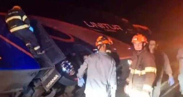 Um ônibus de excursão de Marília tombou na rodovia Castelo Branco, em Santa Cruz do Rio Pardo, neste sábado (16) à noite. O veículo, com 39 pessoas, iria a Aparecida do Norte. Várias passageiros ficaram feridos, segundo o site de notícias Passando a Régua.