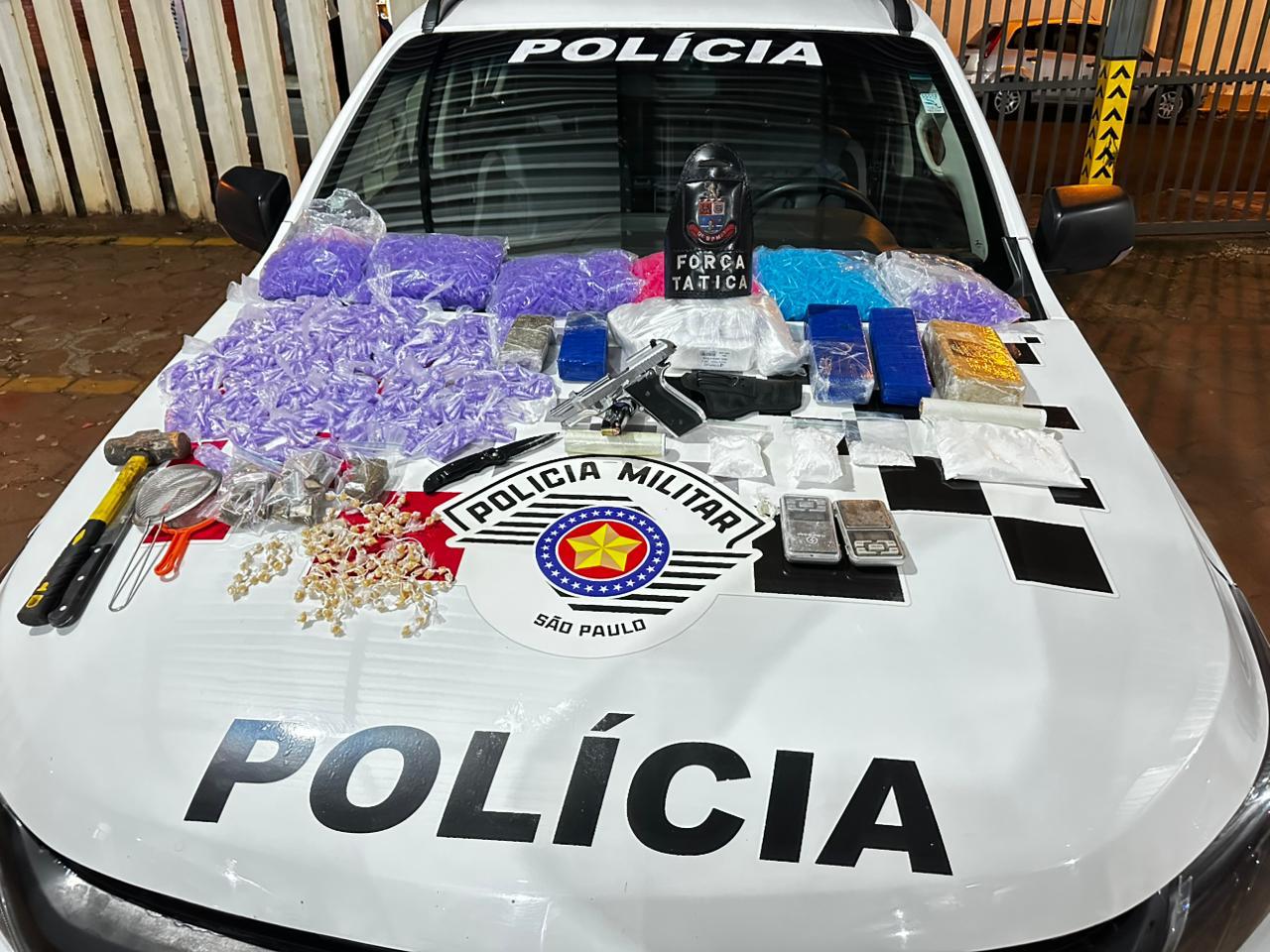 Força Tática prende dois por tráfico em São Manuel e apreende drogas e arma