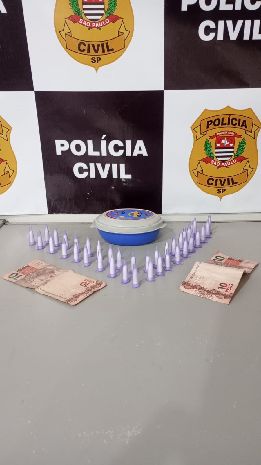 Ao visualizarem o indiciado já conhecido pelas força de segurança, ele aparentou desconforto e nervosismo com a presença da viatura. Ao abordá-lo, os policiais localizaram cinco pinos de cocaína e vinte reais em dinheiro.