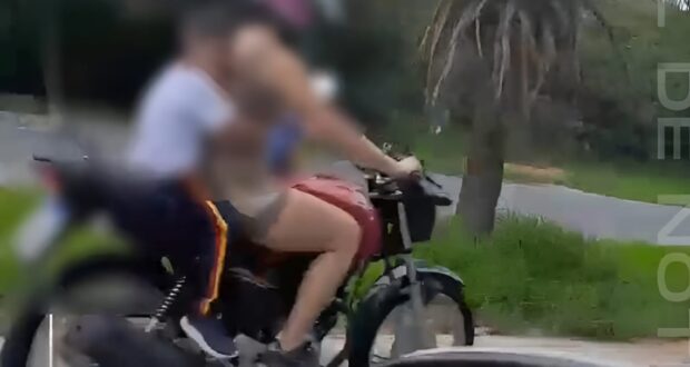 Um motorista flagrou uma motocicleta transitando em uma avenida de Sorocaba, próxima à Rodovia do Parque São Bento, na saída para Santa Marta. Na garupa da moto, havia uma criança, aparentemente com cerca de 5 anos, sem capacete.