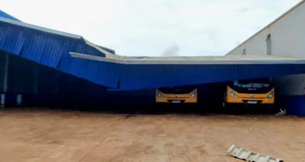 Um forte temporal, com ventos de alta intensidade, atingiu a cidade de Taquarituba na noite de sexta-feira (7) e causou significantes estragos na infraestrutura municipal. Entre os principais danos está o desabamento parcial de uma das garagens da prefeitura, que caiu sobre dois ônibus do município, deixando-os inutilizados.