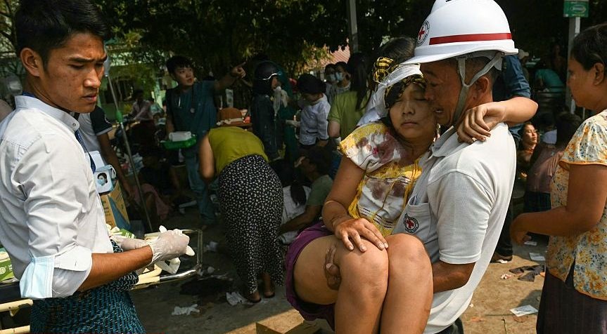 Forma diversos os casos de morte dentro do país, como o desabamento parcial de uma mesquita em Taungoo que deixou três mortos. Além disso, um hotel também desabou completamente deixando mais de 20 pessoas feridas.