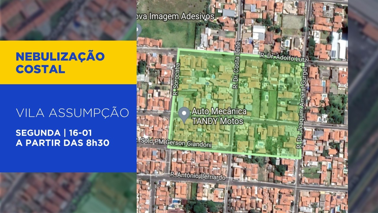 Por conta da notificação recente de casos de dengue na região da Vila Assumpção, a Vigilância Ambiental em Saúde (VAS) realizará a atividade de nebulização com bomba costal na segunda-feira, 16, a partir das 8h30.