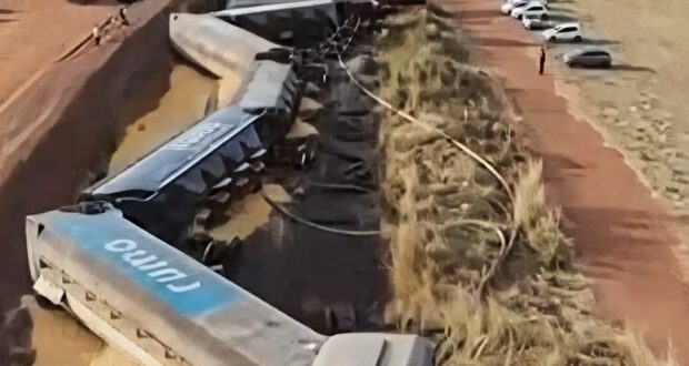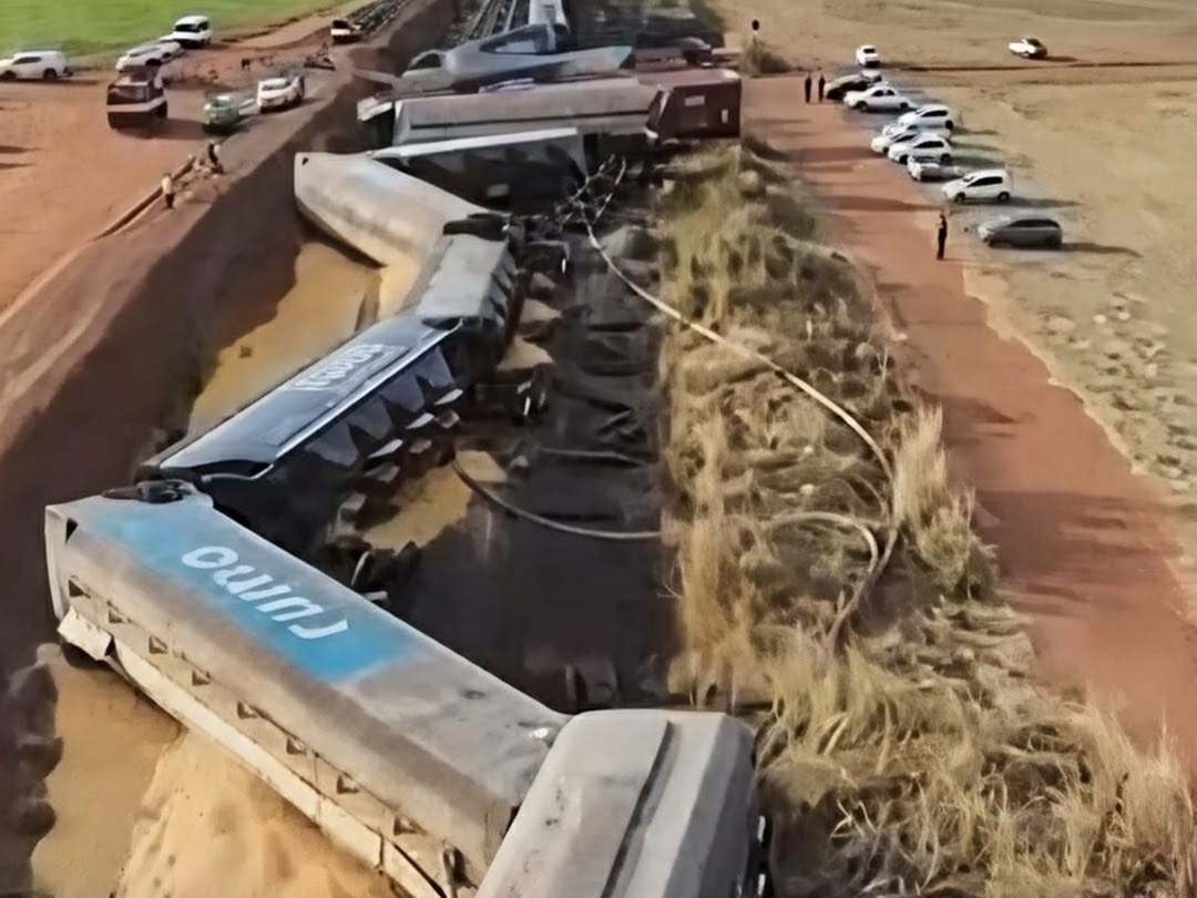 Cerca de 15 vagões tombaram e o veículo foi arrastado por aproximadamente 200 metros, mas não houve registro de feridos. A Rumo, empresa responsável pela ferrovia, está no local para remover os vagões e avaliar os danos.
