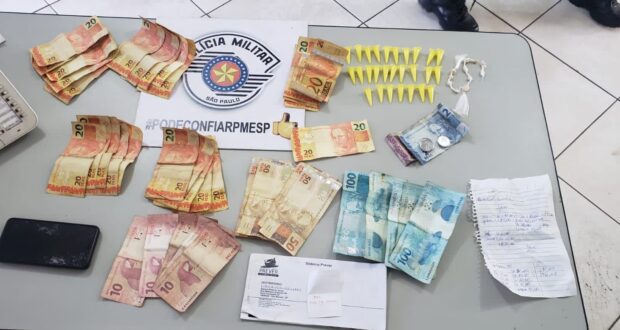 Com eles foram localizadas 27 porções de cocaína, 11 de crack e 01 de maconha, além de R$1.270, 50 em espécie.