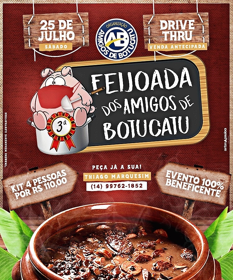 O evento acontevcerá no sábado, dia 25/07, data que já estava reservada para ser um dia especial, nossa 3° Feijoada dos Amigos e não vamos deixar de fazer a festa, porém, com a pandemia vamos fazer diferente.