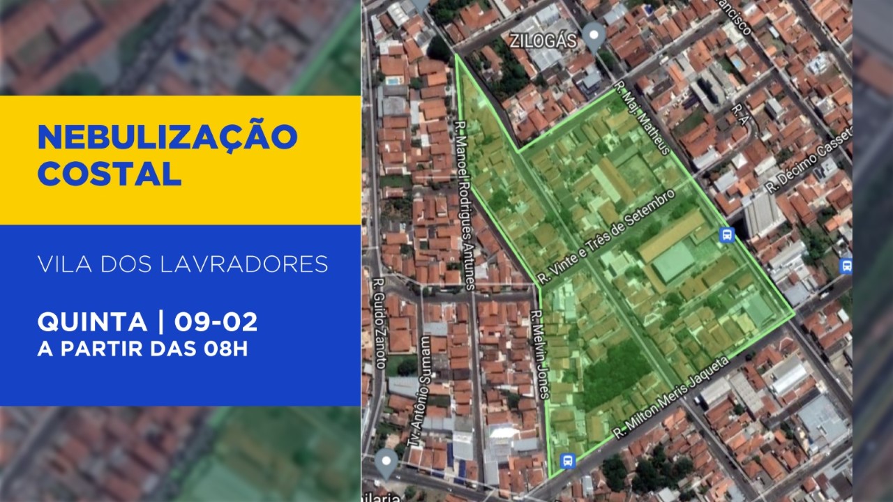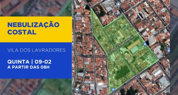 Na quarta-feira, 08, a ação será na Chácara dos Pinheiros, e na quinta-feira, 09, a nebulização será na Vila dos Lavradores.