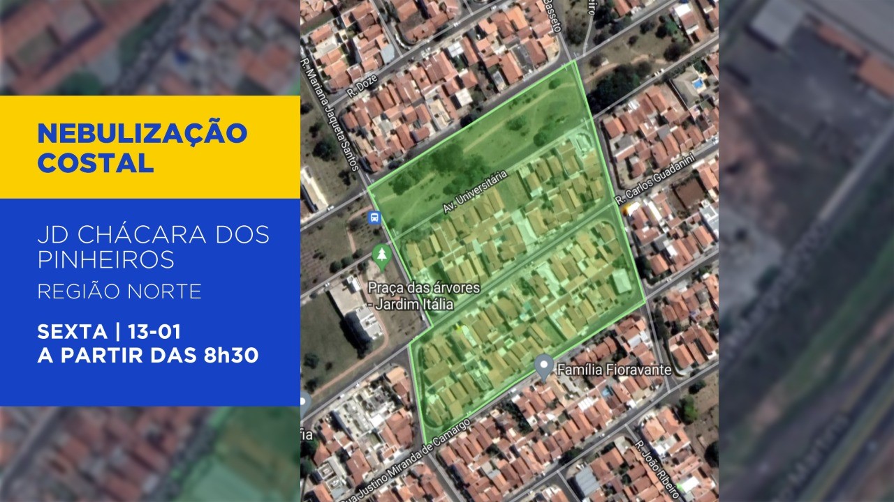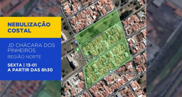Por conta da notificação recente de casos de dengue nos bairros da Cecap e Chácara dos Pinheiros, a Vigilância Ambiental em Saúde (VAS) realizará a atividade de nebulização com bomba costal. Na Cecap será na quinta-feira, 12, a partir das 8h30, e na Chácara dos Pinheiros na sexta-feira, 13, também a partir das 8h30.